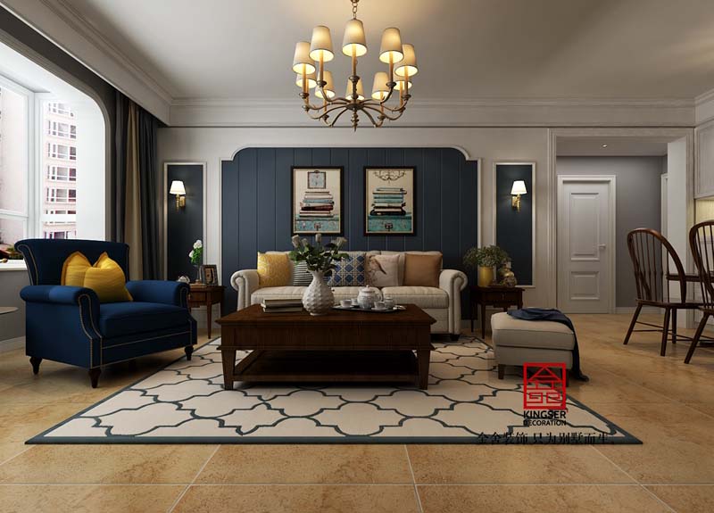 榮盛華府-美式風(fēng)格-客廳