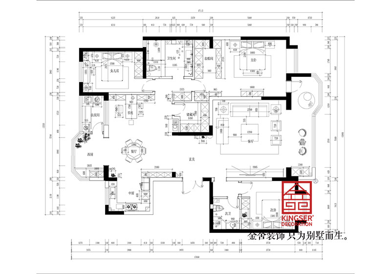 1.應(yīng)業(yè)主要求改造了一部分主臥的衛(wèi)生間,并把女兒房與主臥的衛(wèi)生間合并。給主、臥內(nèi)增加了一個衣帽間,使主臥看起來十分大氣。