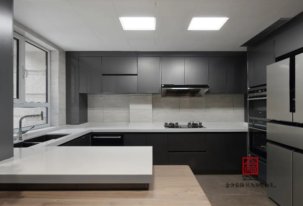 半開放式廚房兼顧優(yōu)雅與舒適,既注重起居品質(zhì),又不喜歡過分的張揚(yáng),這是一種生活感悟,更是一種對奢享的崇尚。