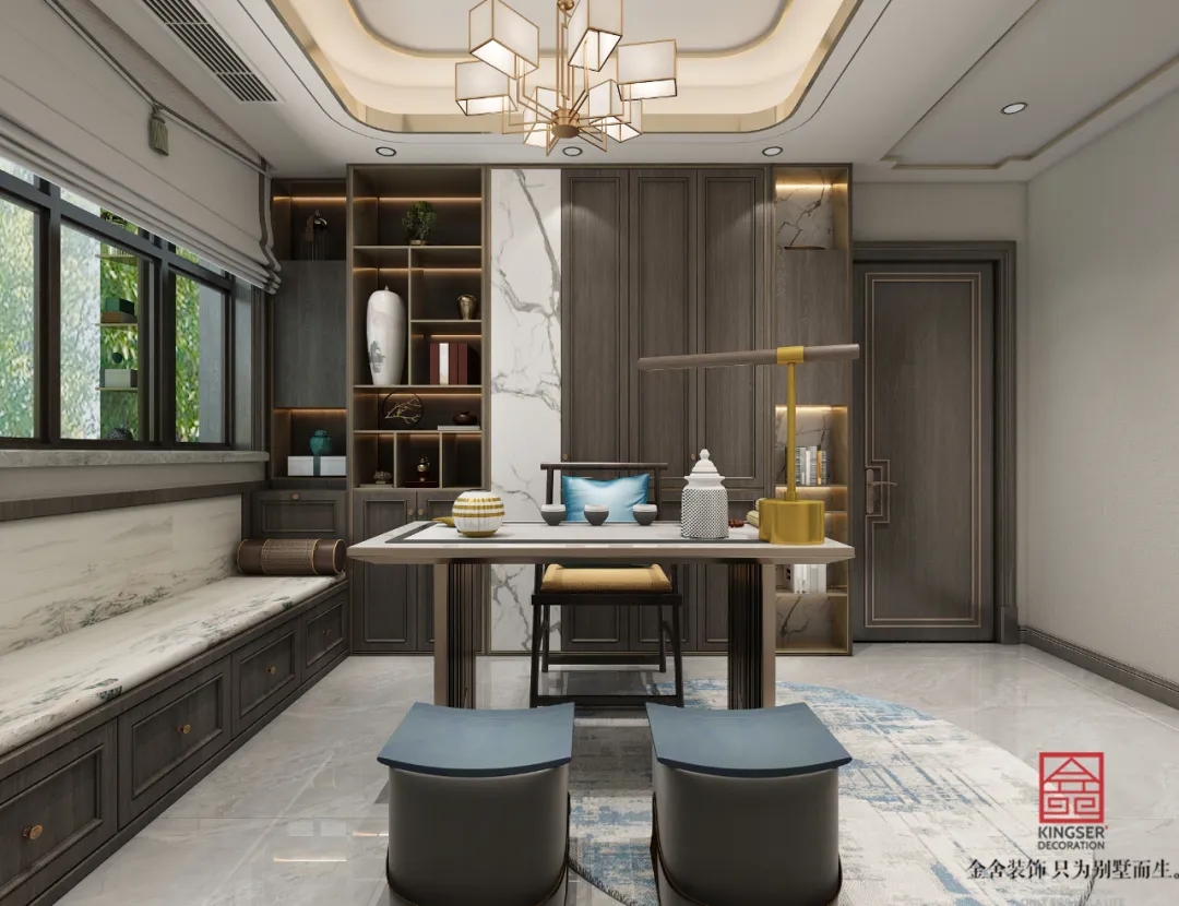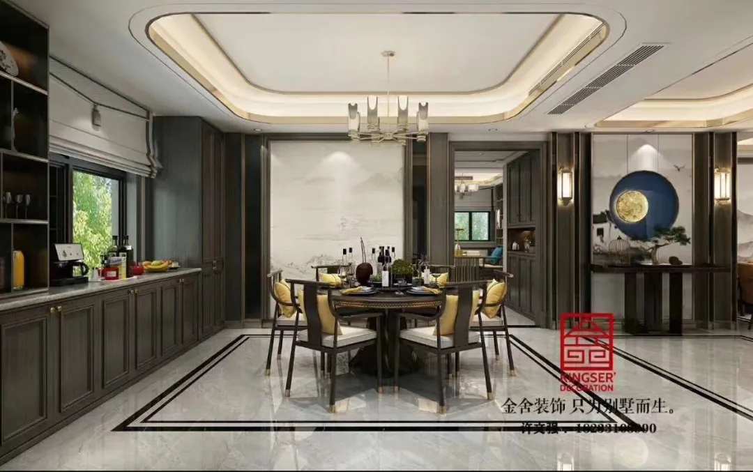 此案例為石家莊金舍裝飾-榮盛華府215平米新中式風(fēng)格裝修案例。新中式風(fēng)格傳承了傳統(tǒng)中式風(fēng)格的文化底蘊(yùn),又將現(xiàn)代審美融入其中,將含蓄內(nèi)斂的美學(xué)韻味徐徐呈現(xiàn)在了眾人面前,令人沉醉、留戀。似有靜謐、似含古韻,思想不禁浮想聯(lián)翩,無法掩飾一個(gè)人的精神世界,是心靈和性情的外化之地。中式元素與現(xiàn)代材質(zhì)搭配,既有文化的傳承又不會全盤固守傳統(tǒng),是現(xiàn)代的思想與千年來的文化彼此融合與碰撞。